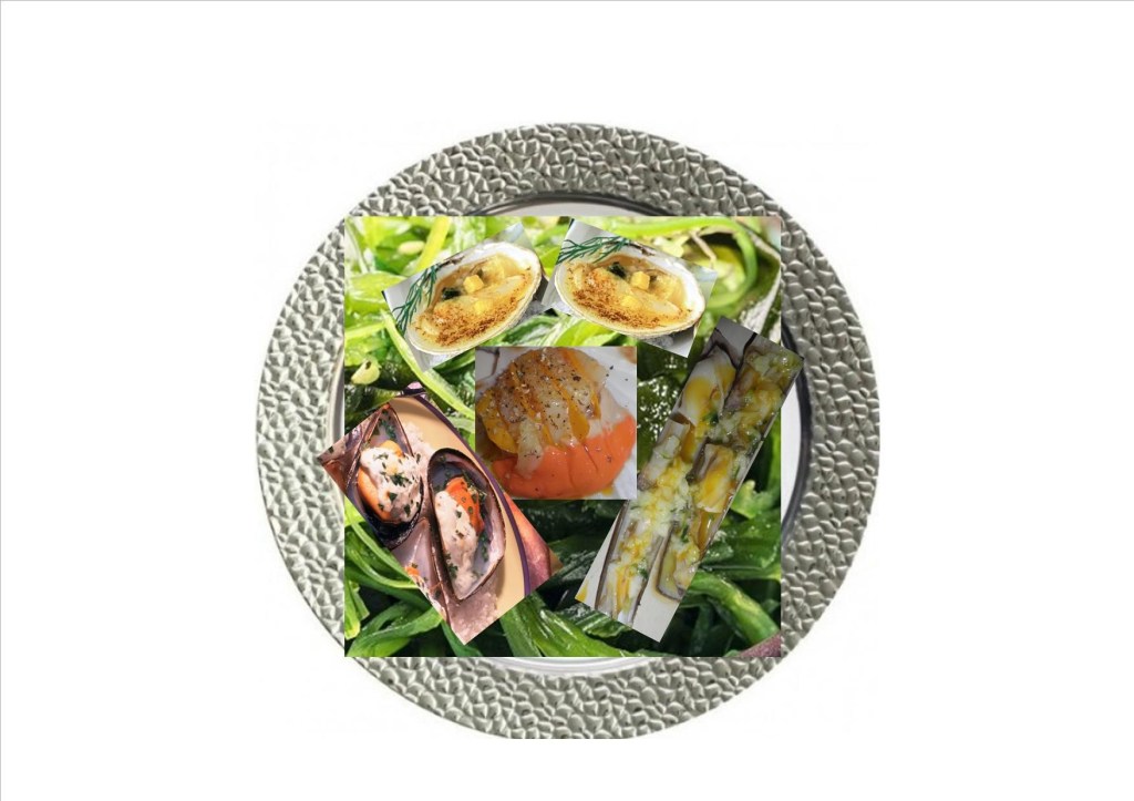 2 belles palourdes, 2 à 3 couteaux, 1 noix de Saint-Jacques coraillée, 2 grosses moules d’Espagne.